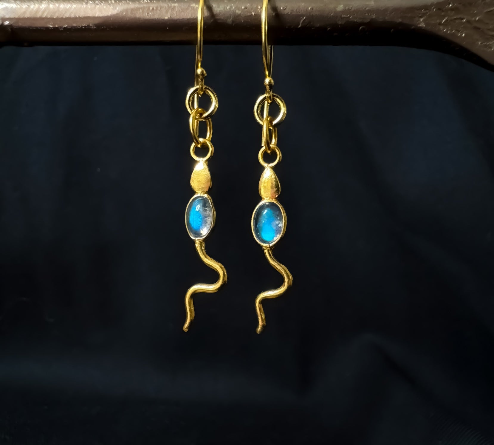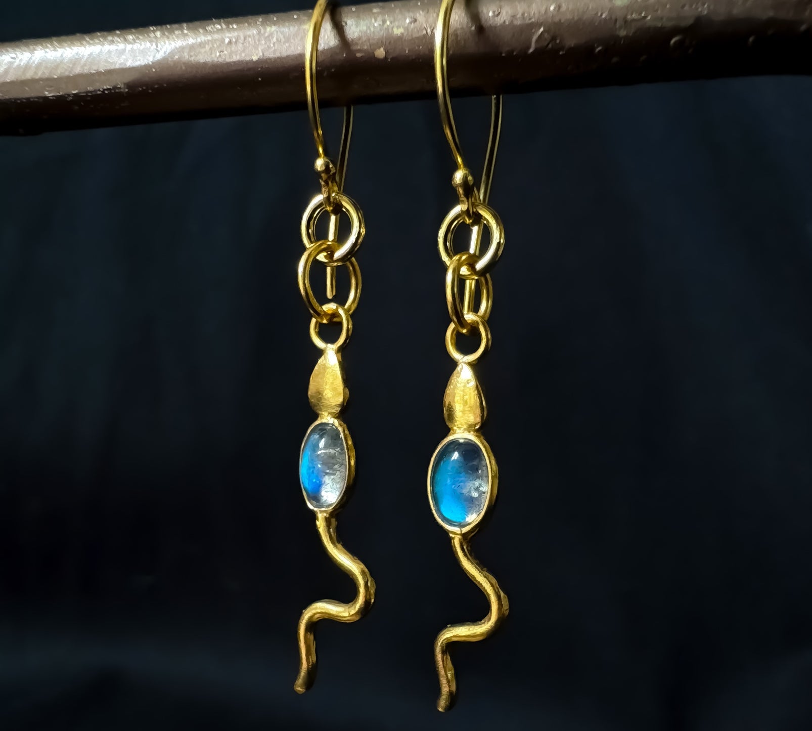 Eva Serpent Drop Earrings Gold - Labradorite