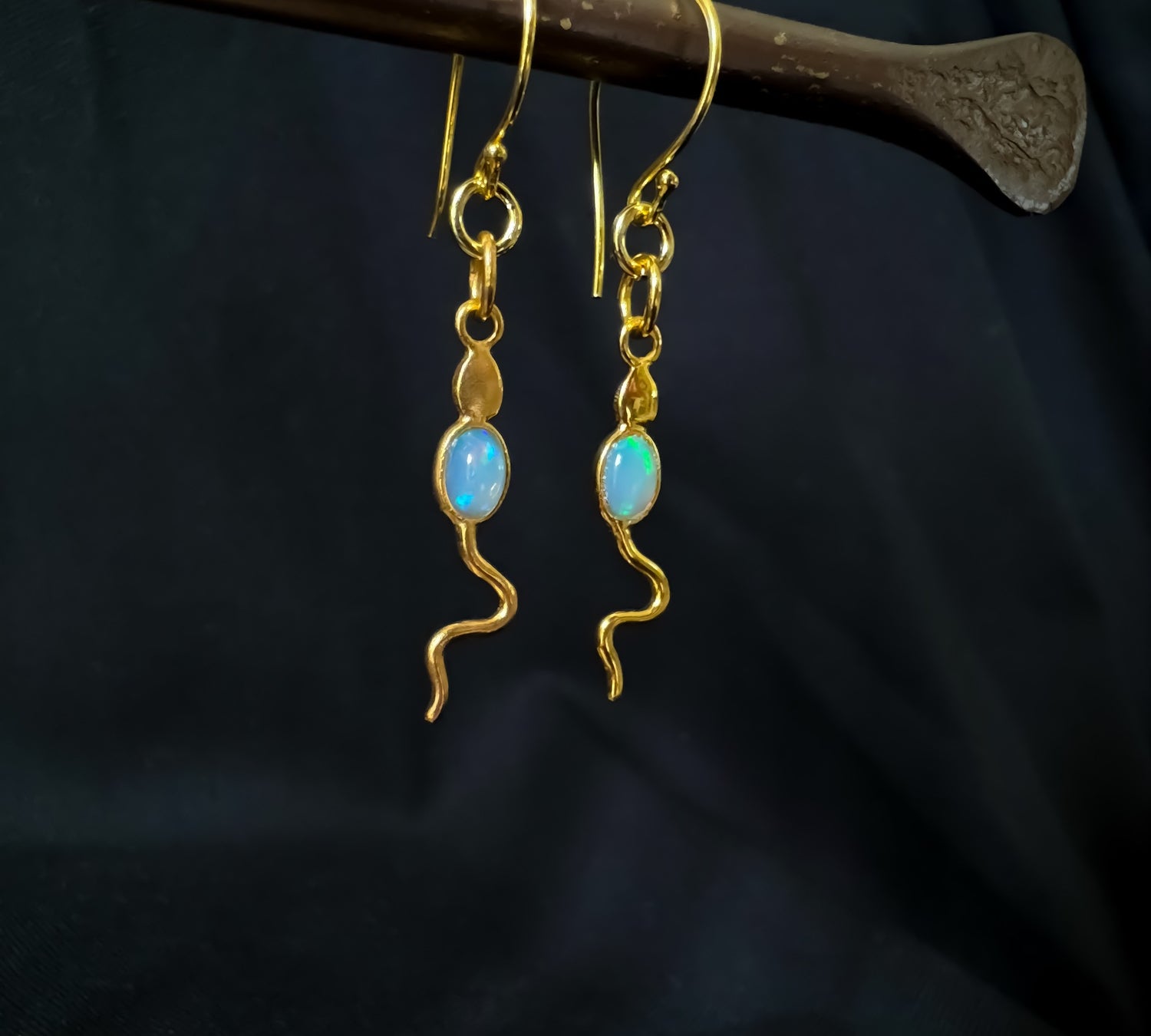 Eva Serpent Drop Earrings Gold - Opal