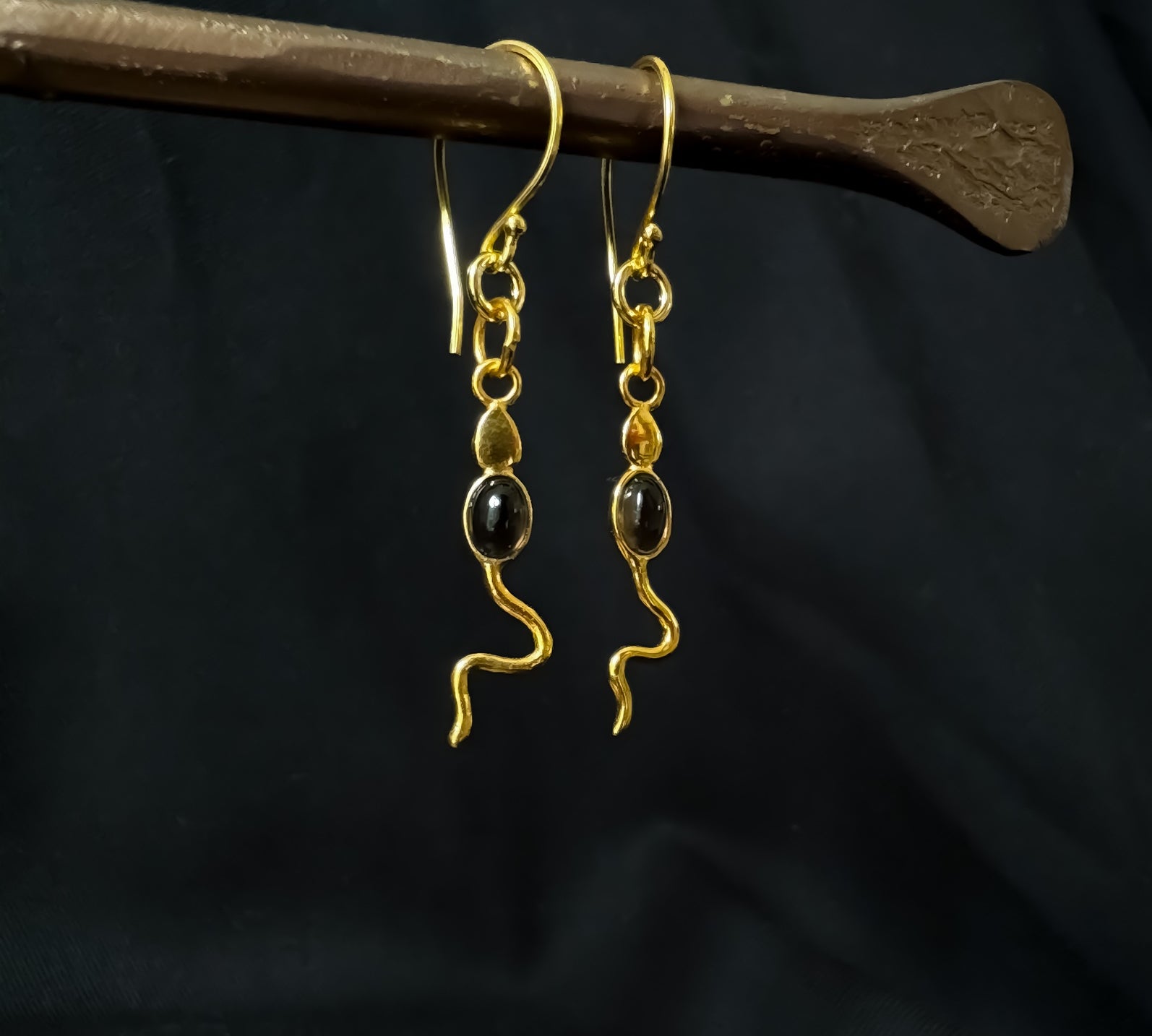 Eva Serpent Drop Earrings Gold - Smokey Quartz