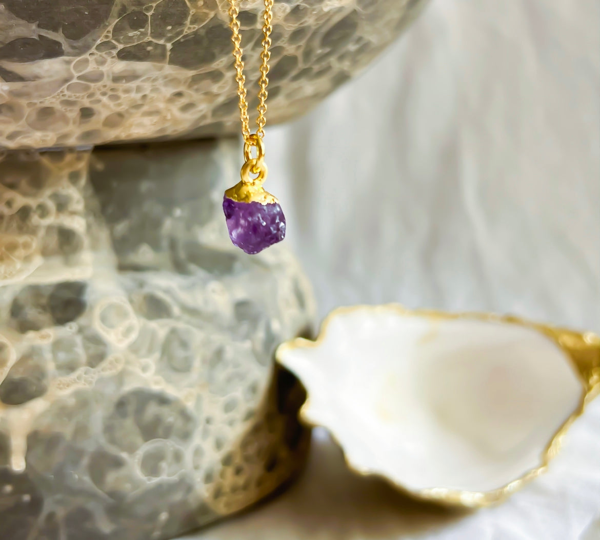Amethyst Raw Crystal Pendant Necklace - Crown Chakra