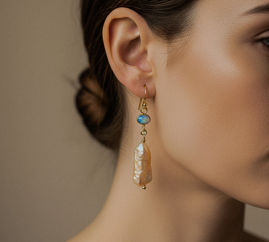 Combarro - Baroque Freshwater Pearl Gold Hoop Earrings