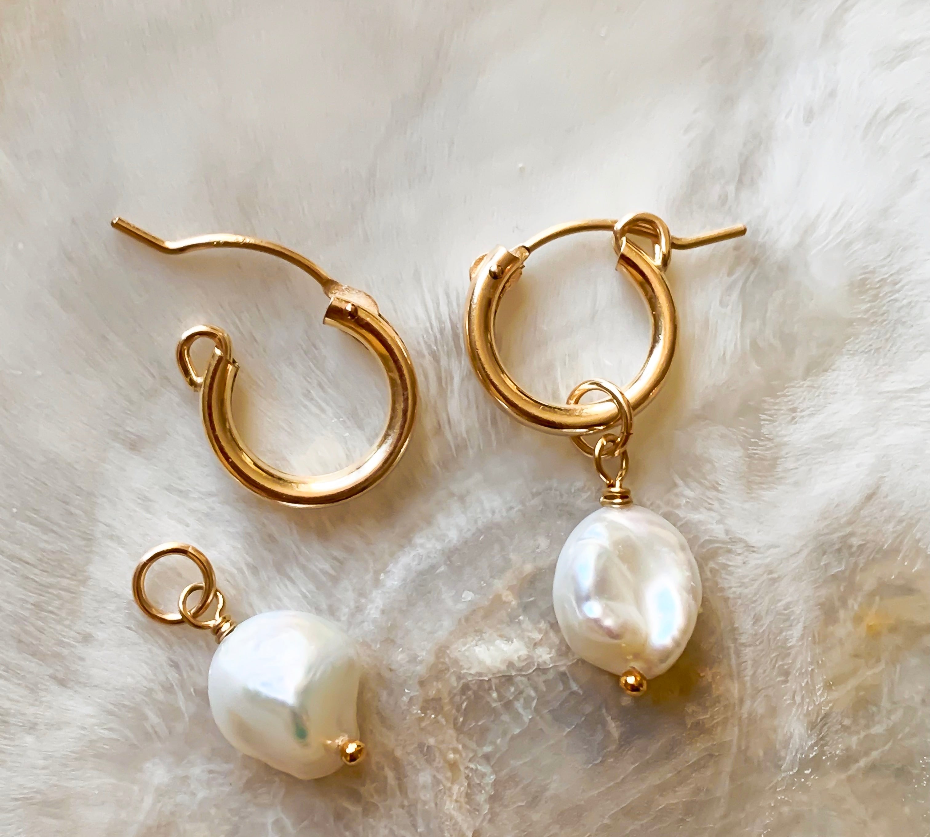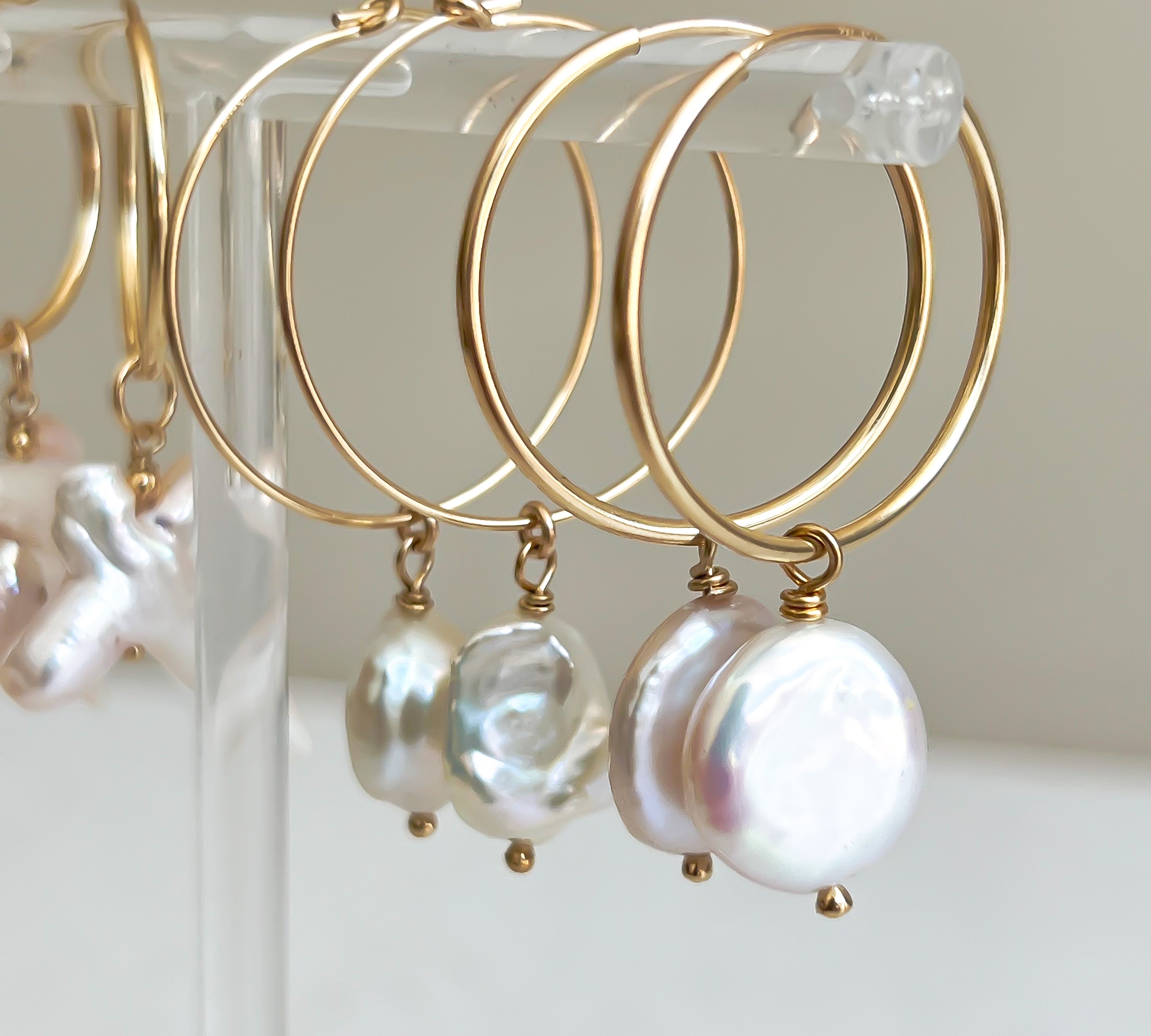 Lydia - Freshwater Coin Pearl Hoop Earrings