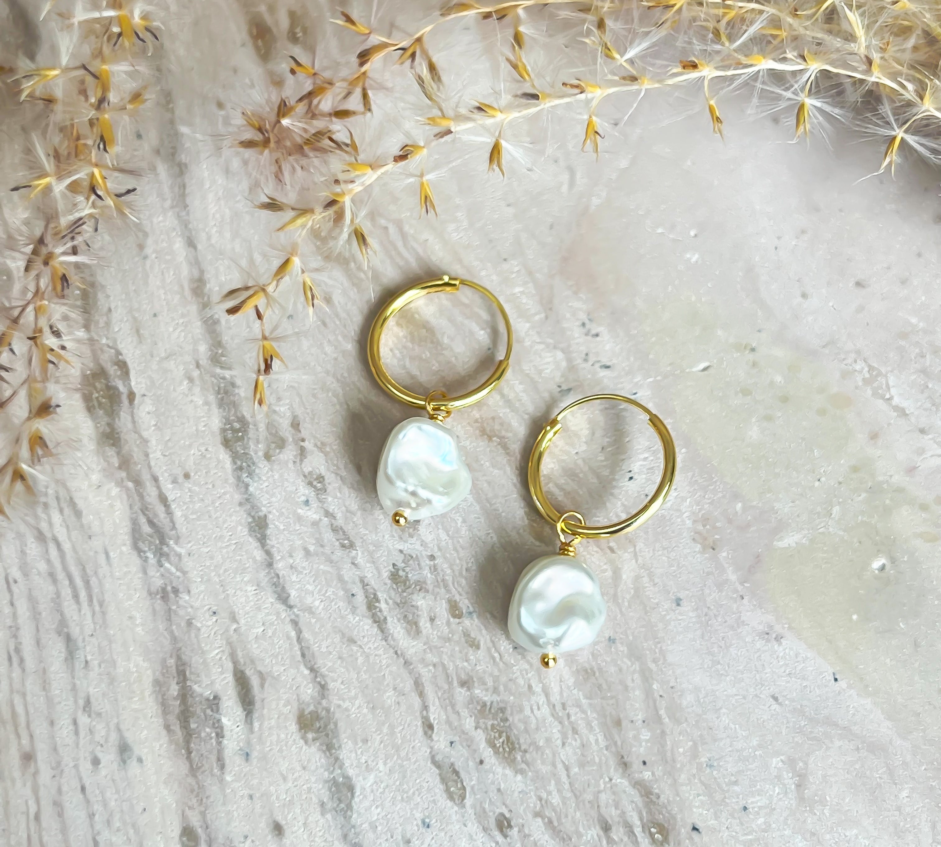 Combarro - Baroque Freshwater Pearl Gold Hoop Earrings