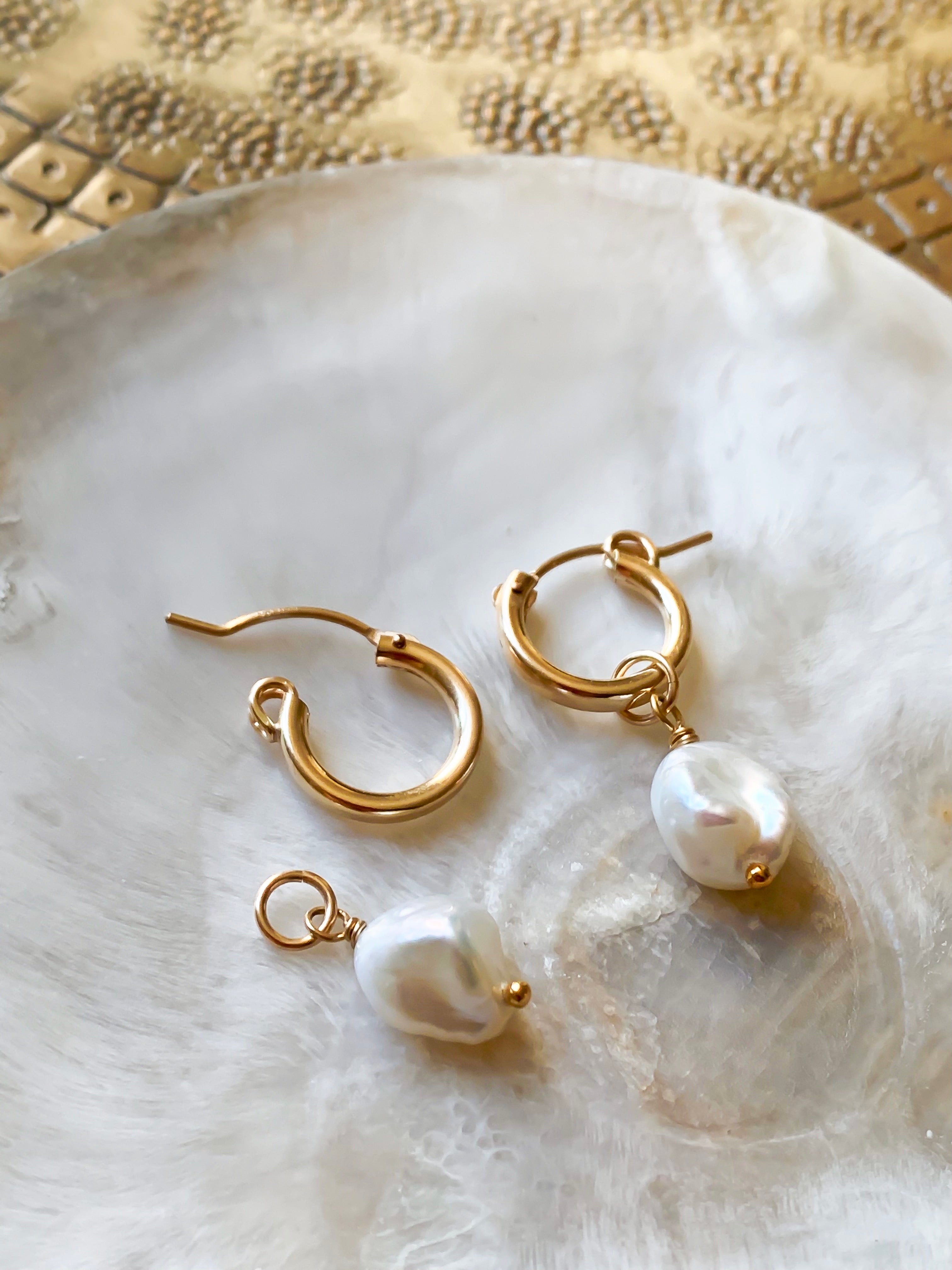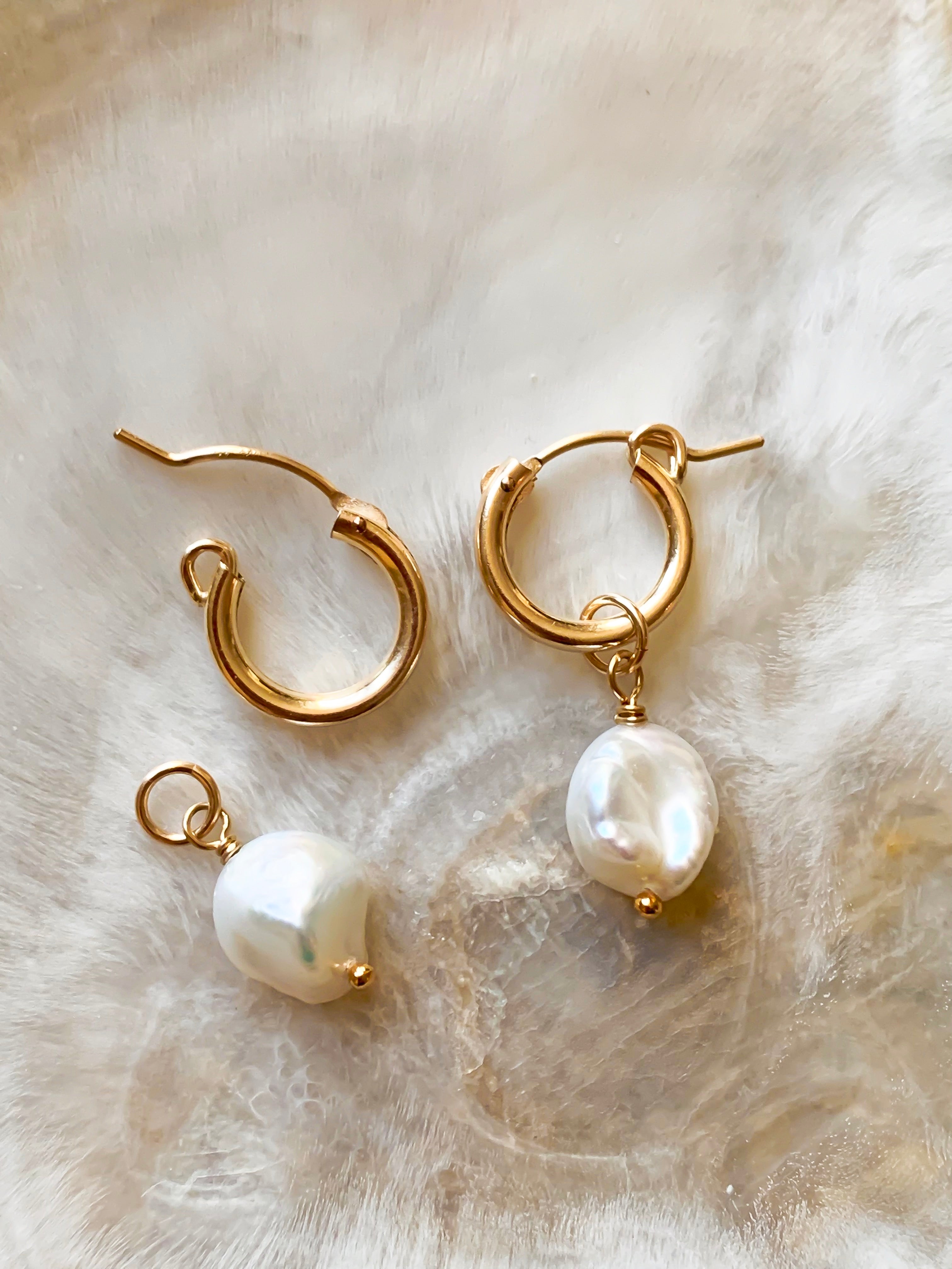 Detachable charms: our freshwater pearl charms are fitted with a 5mm jumpring, so you can easily remove the pearl charms from the hoops and wear them on a necklace or any other hoop earrings you own.