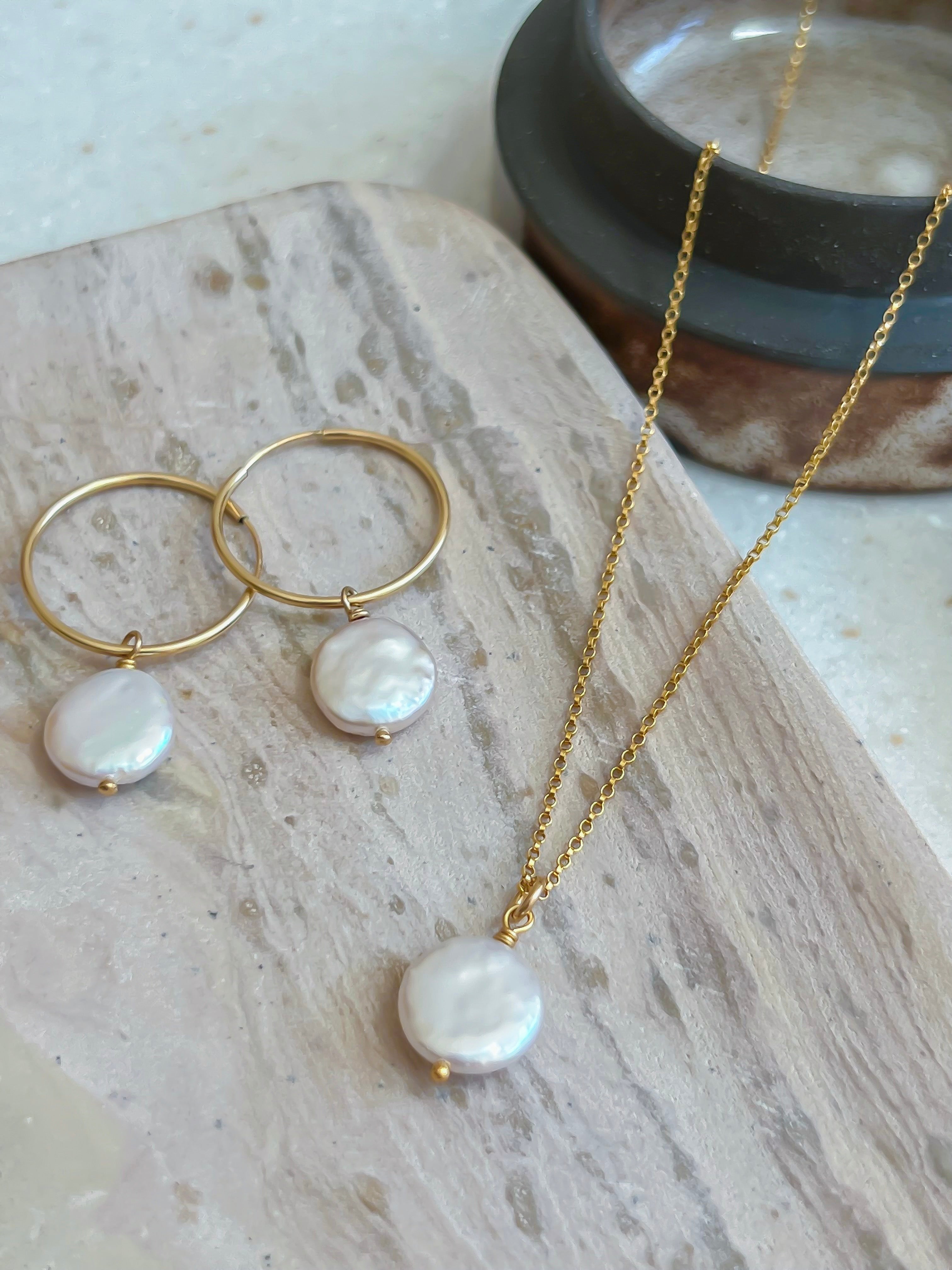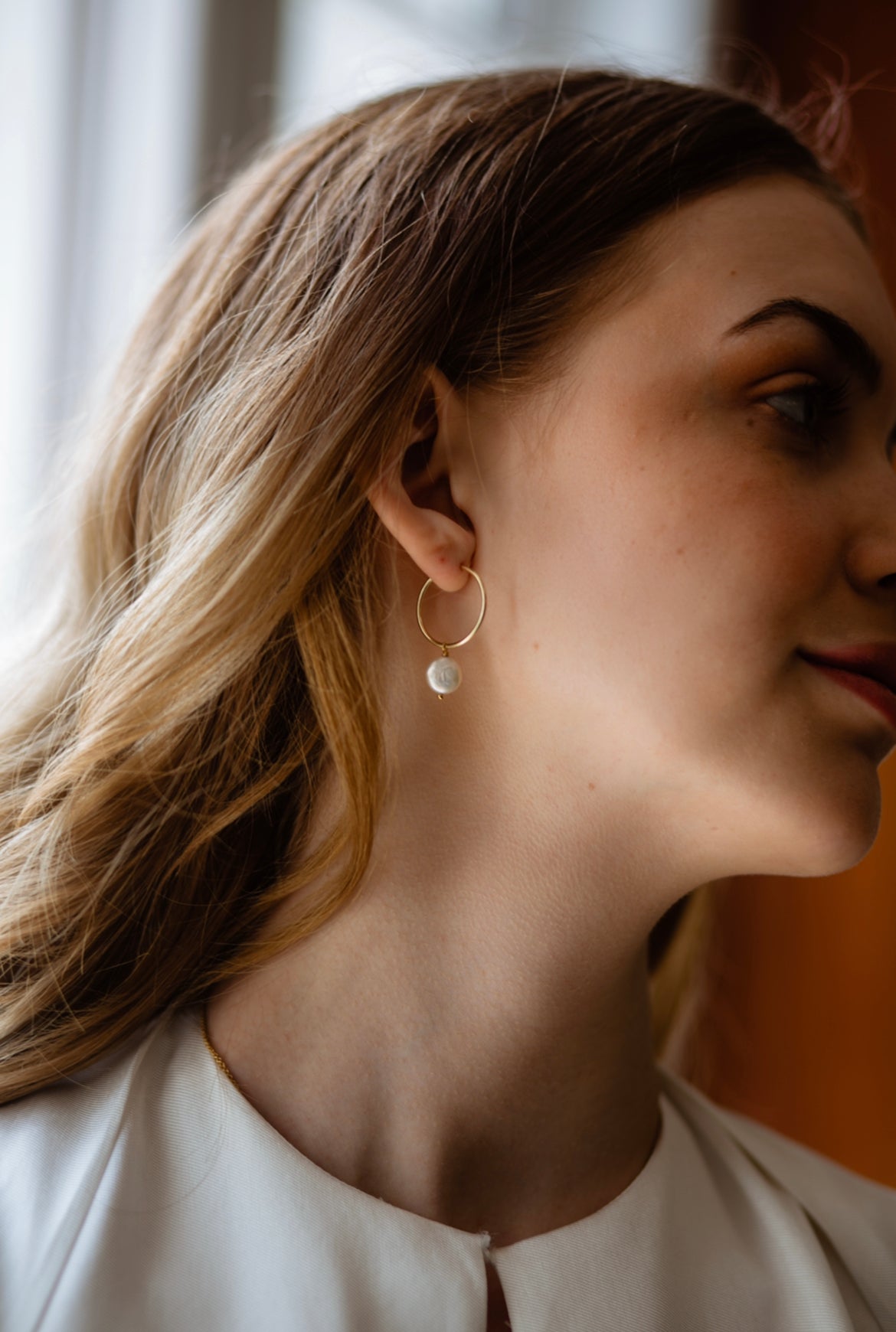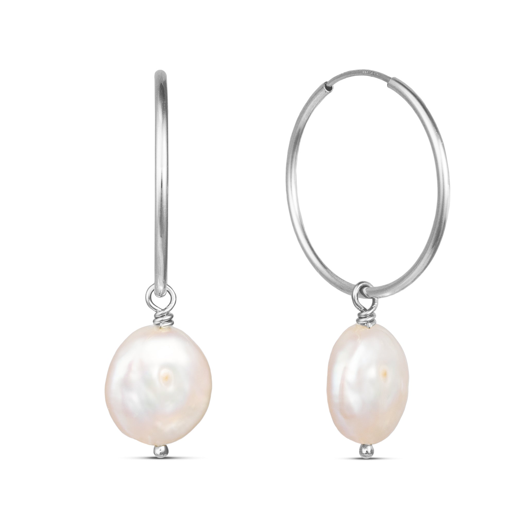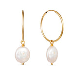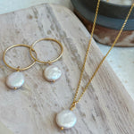 Lydia - Freshwater Coin Pearl Hoop Earrings