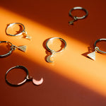 Cute, little playful hoops with textured charms inspired by sunsets at the beach.