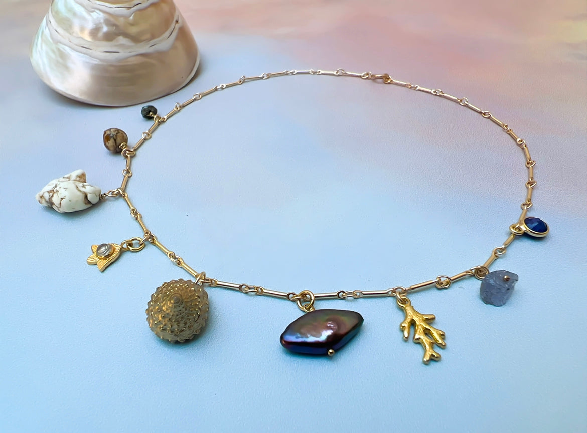 Ocean Life - Coastal Multi Charm Gold Necklace