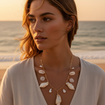 The Ibiza Shell Necklace celebrates all that is summer 🌞 Featuring 3 large shells found in the south east of Ibiza, solar quartz and freshwater pearls.