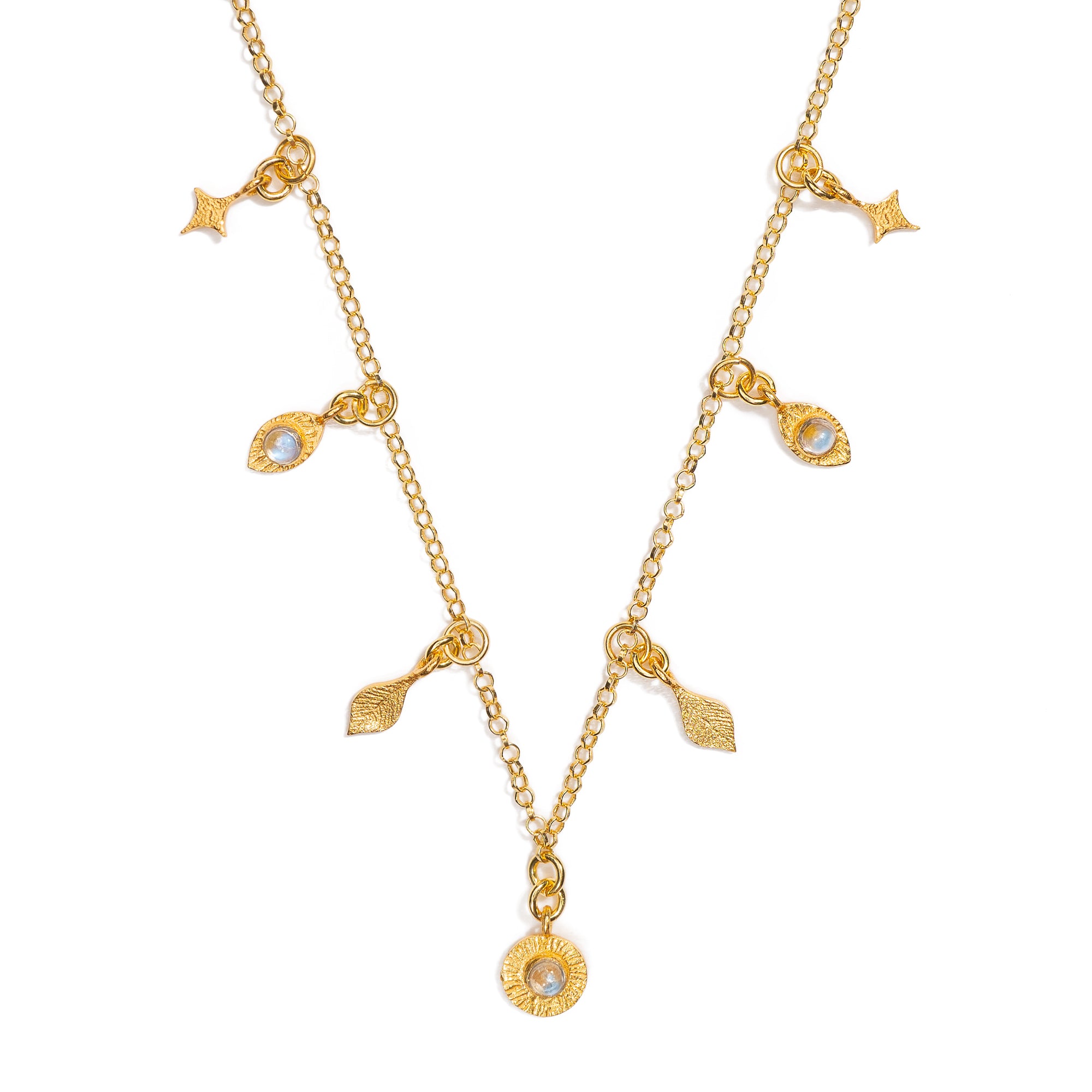 Soluna - Gold Moonstone Charm Necklace with Gold Charms