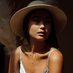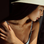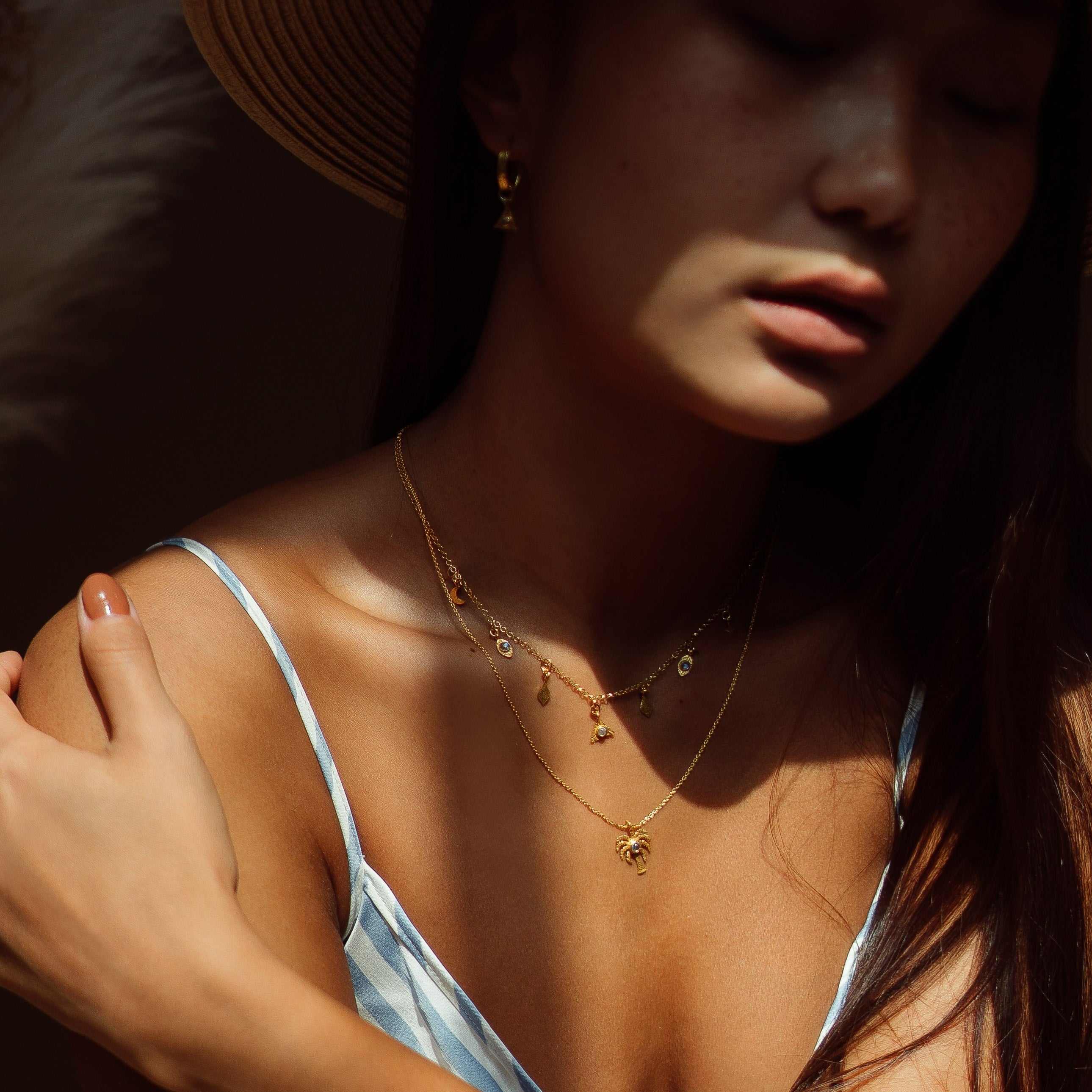 Model is wearing the Terra Charm Necklace in combination with the Palma Pendant Necklace (on a 20” inch chain)