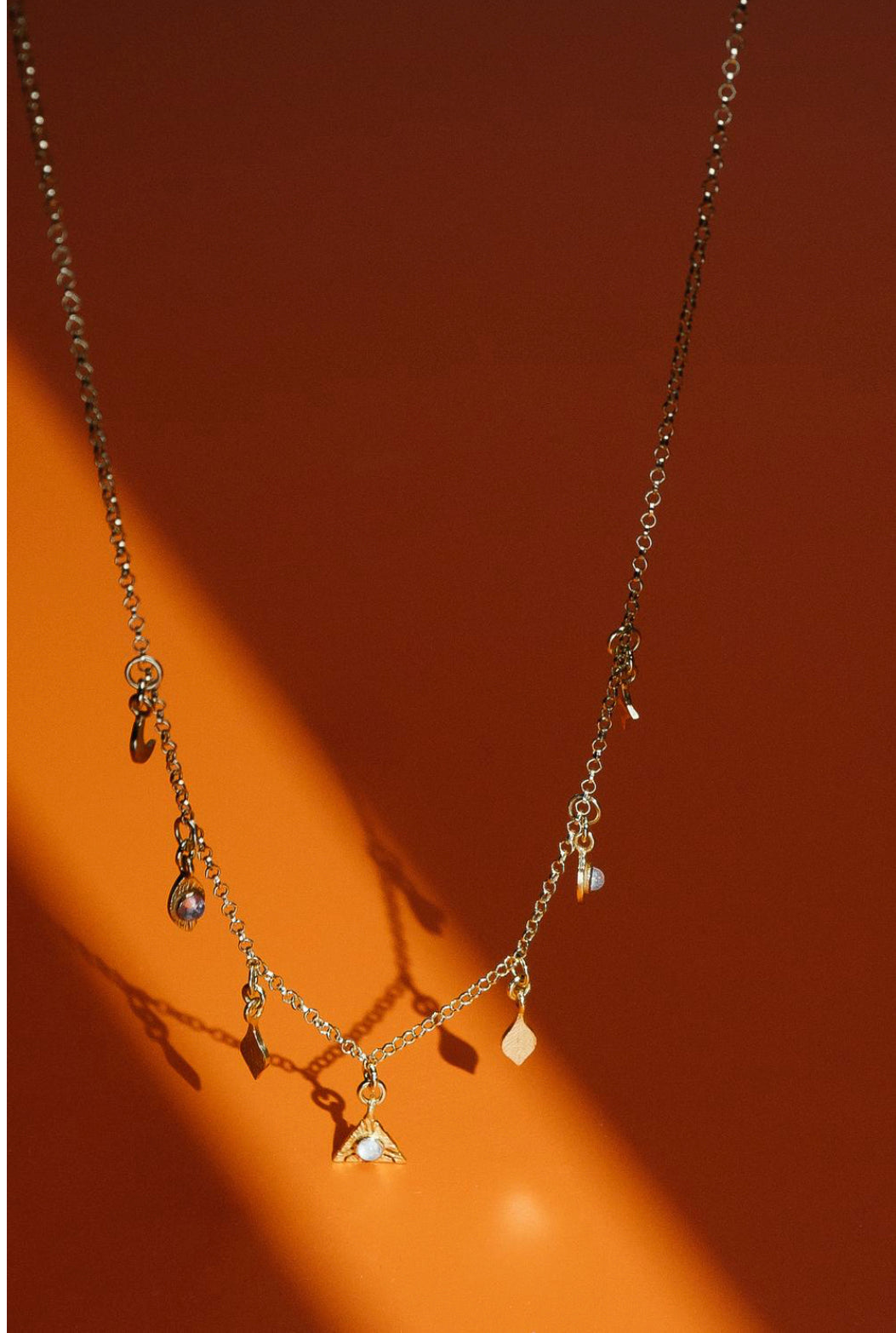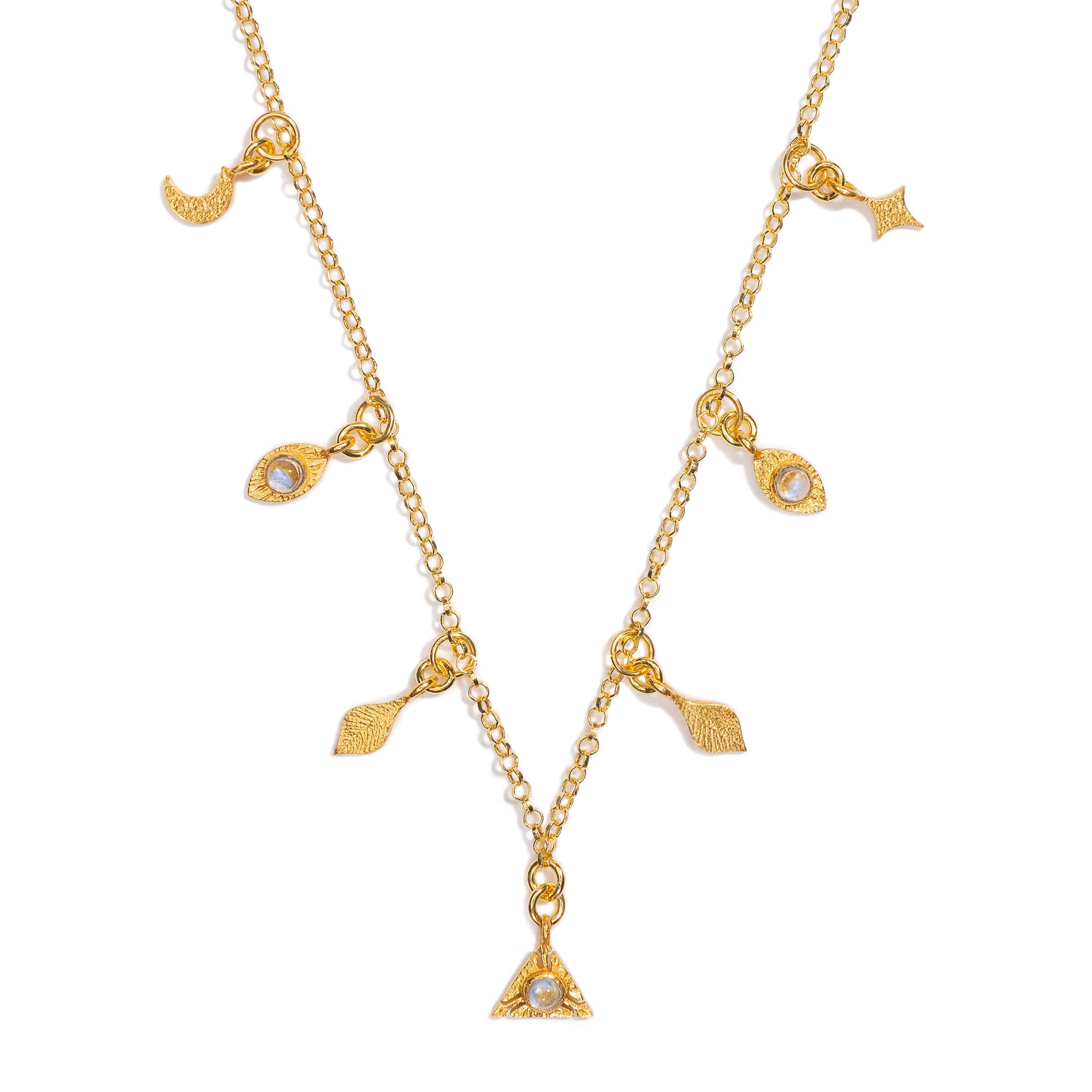 Terra - Gold Moonstone Charm Necklace with Gold Charms